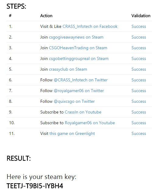 Переходим по ссылке, логинимся через Steam и Twitter, выполняем все задания - получаем ключ.